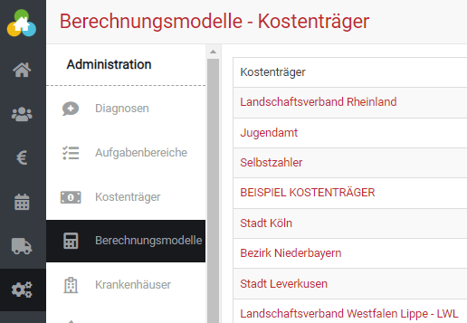Für jeden Kostenträger muss mindestens ein Berechnungsmodell hinterlegt werden. Sie können natürlich auch mehrere Berechnungsmodelle für einen Kostenträger hinterlegen.