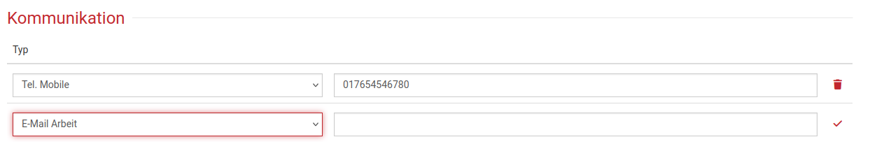 Im Abschnitt Kommunikation können Sie anschließend eine E-Mail Adresse hinterlegen.
