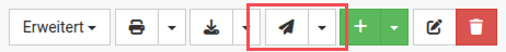 Ist in der Administration ein E-Mailkonto zum versenden von E-Mails hinterlegt, finden Sie in der entsprechenden Faktura-Liste, z.B. die Rechnungsübersicht das entsprechende Symbol zum versenden der E-Mails.