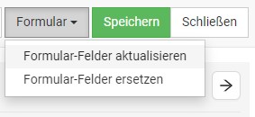 Klicken Sie dabei zunächst oben Rechts auf „Erweitert“ -> Formular-Felder aktualisieren um die vorher erstellten Bausteine anzeigen zu lassen.