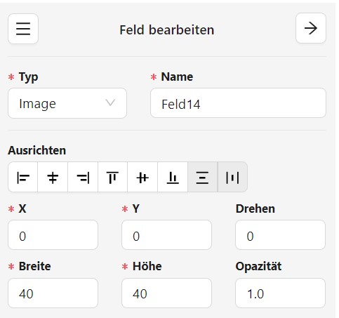 Mit dem Editor kann die Schriftgröße angepasst werden. Um einheitliche Abstände nach links zu erhalten kann für jeden Baustein der „X“ Wert auf den gleichen Wert gesetzt werden. Für die rechte Seite kann die Breite vereinheitlicht werden, sodass die Schrift immer an der gleiche Stelle bricht. Mit dem „Y“ Wert können Sie die Zwischenabstände kontrollieren zwischen zwei Textfelder bearbeiten.