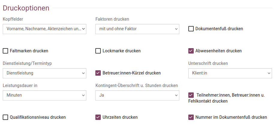 Entscheiden Sie selbst, ob z.B. nur die Summe der unmittelbaren Leistungen, also die Anzahl der geleisteten Fachleistungsstunden auf dem Quittierungsbeleg erscheinen soll oder auch die Summe der abzurechnenden Leistungen. In der Regel wird die Anzahl der geleisteten Fachleistungsstunden mit dem Faktor 1,2 multipliziert. Das Ergebnis ist die Summe der abzurechnenden Leistungen.