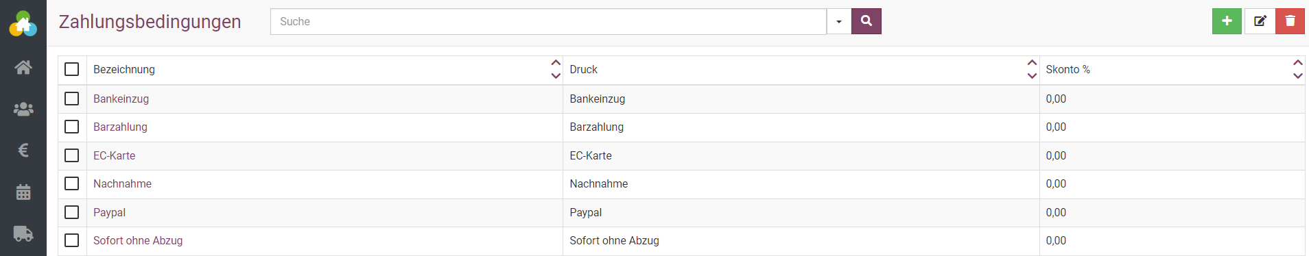 Standardmäßig sind die folgenden Zahlungsbedingungen hinterlegt: