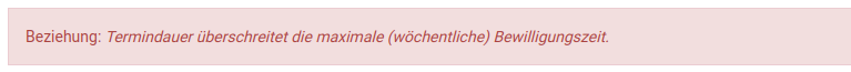 Sofern eine oder beide Checkbox/en nicht aktiv sind und das Kontingent für das Betreuungskontingent überschritten wird, kann der Termin nicht angelegt werden und Sie erhalten eine Fehlermeldung: