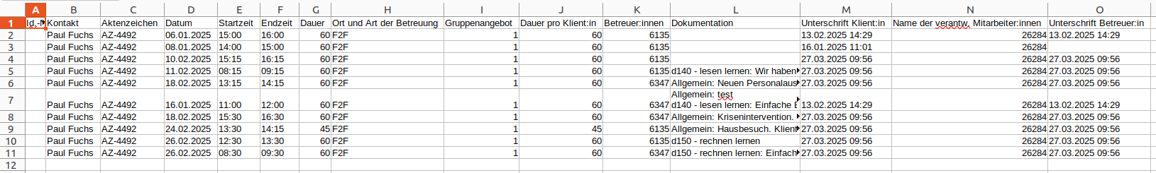 Unter Betreuung->Quittierungsbelege können über „Erweitert“-> Unterschriften exportiert werden.