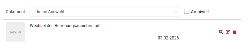Im Dropdown können Sie den Dokumententyp auswählen. Via Checkbox „Archiviert“ werden Ihnen auch archivierte Dokument angezeigt.