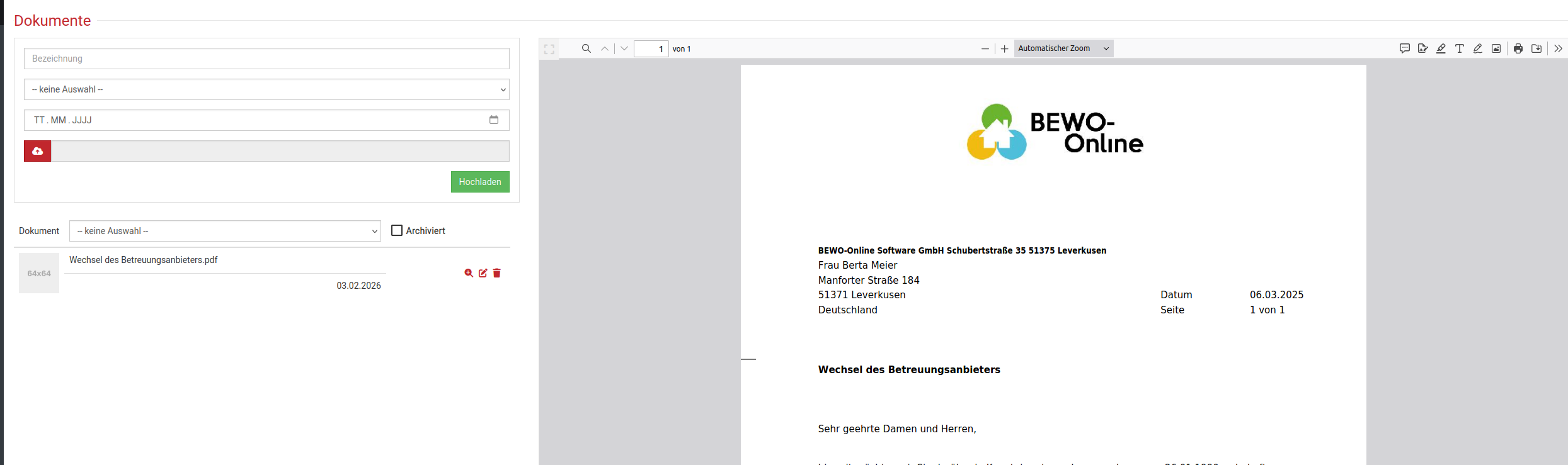 Das Dokument erscheint nun im Abschnitt Dokument.