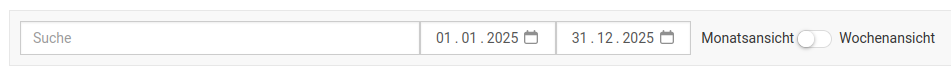 Via Suche können Sie nach einem bestimmten Ziel und via Datumsfelder können Sie einen bestimmten Zeitraum filtern. Sie haben auch die Möglichkeit, zwischen der Monatsansicht und Wochenansicht zu wechseln.