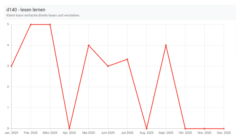 Hier sehen Sie zum einen ein Diagramm, welches Ihnen übersichtlich die Entwicklung bei der/die Klient:in zeigt.