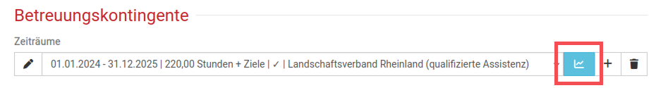 Ist einem Betreuungskontingent mindestens ein Ziel zugewiesen erscheint in der Klient:innen Akte folgendes Symbol neben dem Betreuungskontingent: