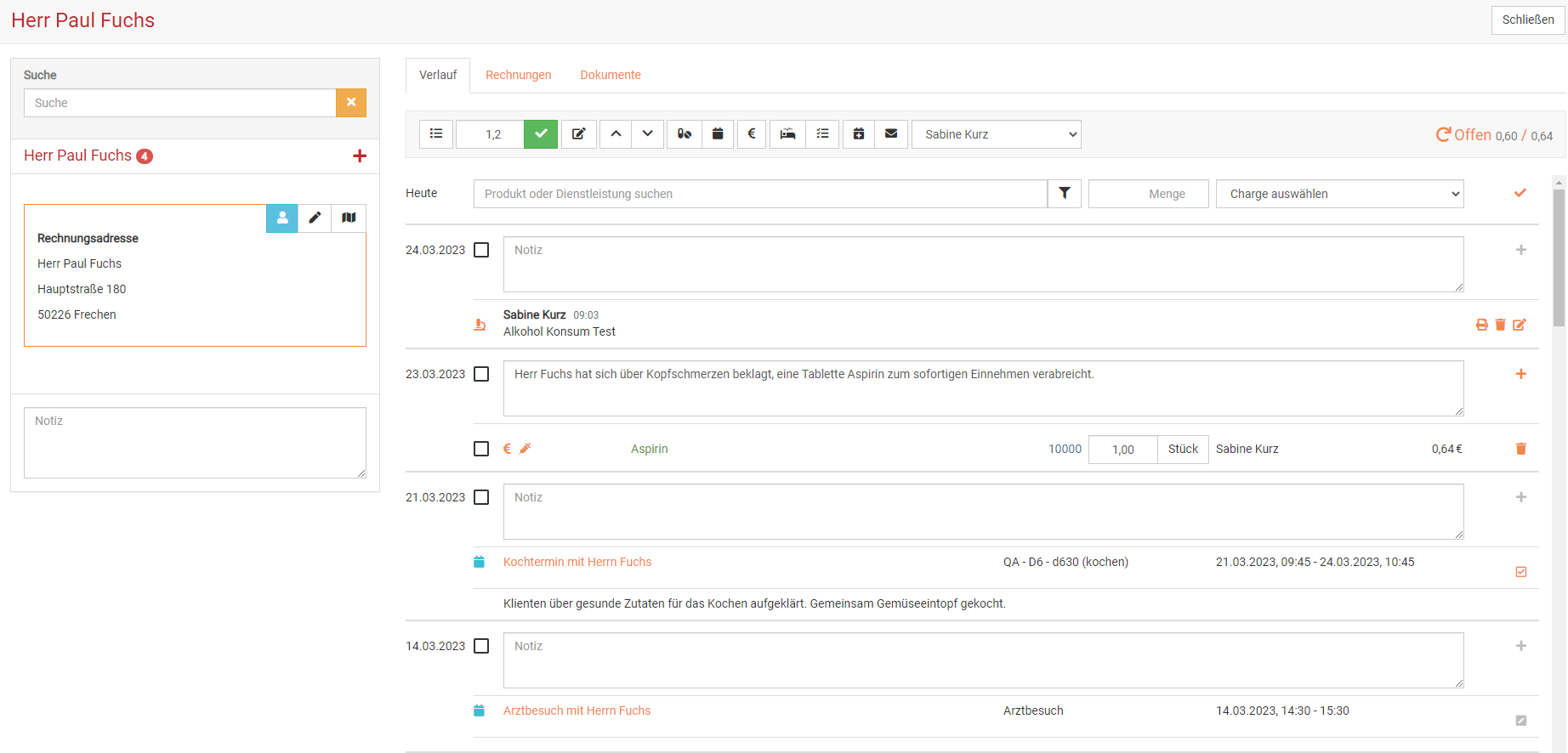 Der Klientenverlauf dient als Verlaufsdokumentation und zeigt alle Aktivitäten an.
