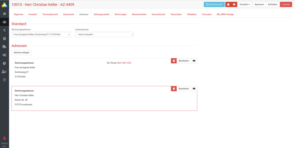 Klient:in Adressen in der digitalen Klient:innenakte von somedo verwalten