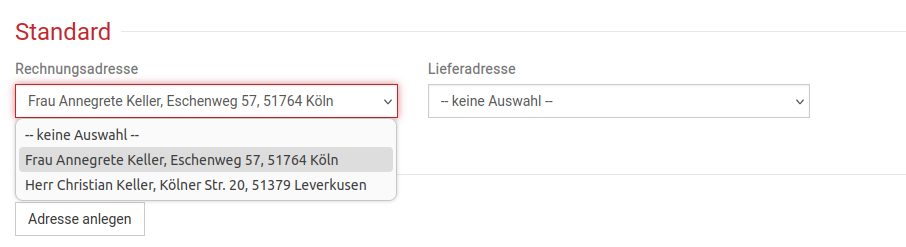Standard Rechnungs-/Lieferadresse