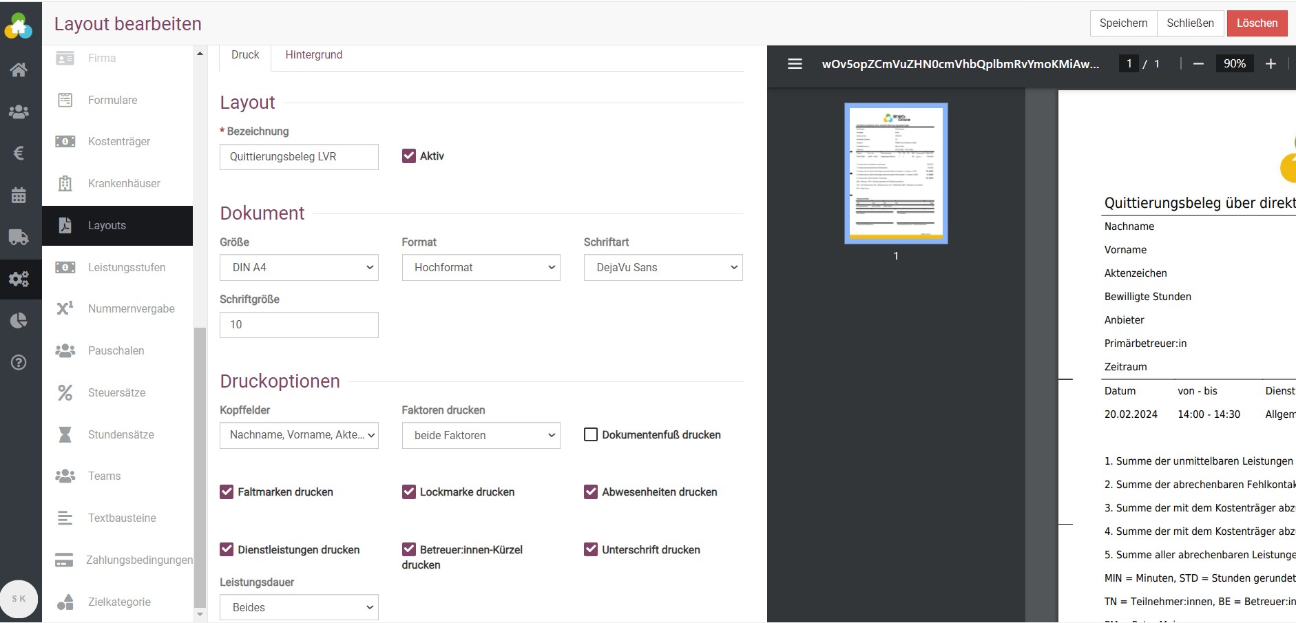 In der Administration unter Layouts – Quittierungsbelege können Sie genau einstellen, welche Informationen Sie auf dem Beleg benötigen.
