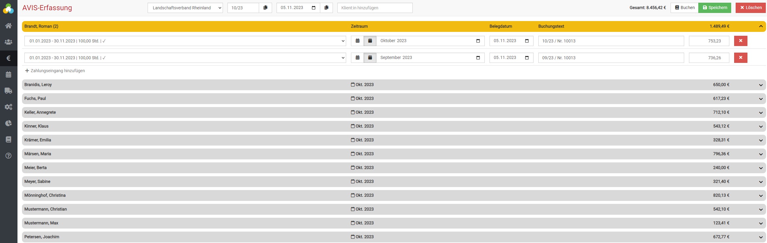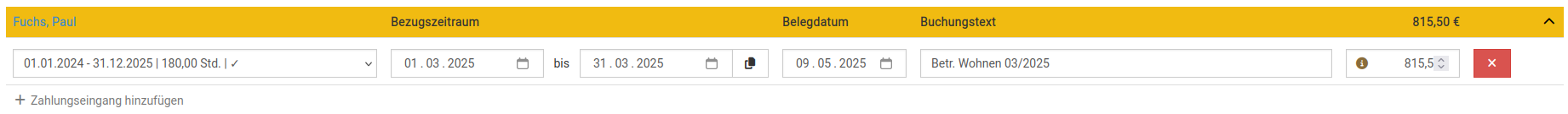 Die Geldbeträge werden bei der nächsten AVIS-Einbuchung praktischerweise automatisch vom Vormonat übernommen, können aber immer manuell abgeändert werden.
