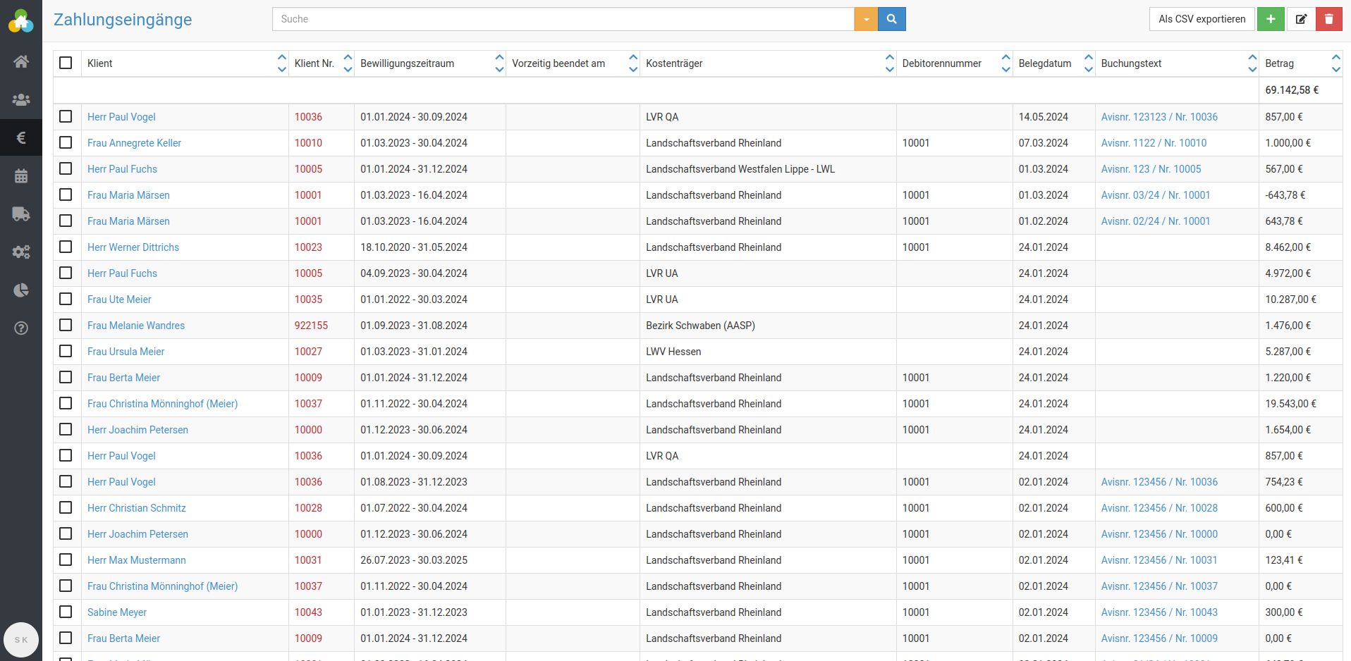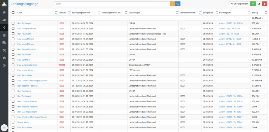 Nun sehen Sie alle Klient:innen, deren aktuelle Bewilligung dem ausgewählten Kostenträger zugeordnet ist.
