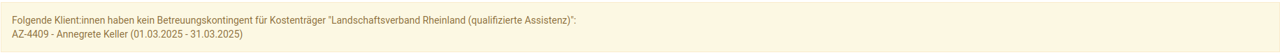 Hat ein:e Klient:in kein Betreuungskontingent für den angegebenen Kostenträger wird Ihnen hierzu eine Information ausgegeben: