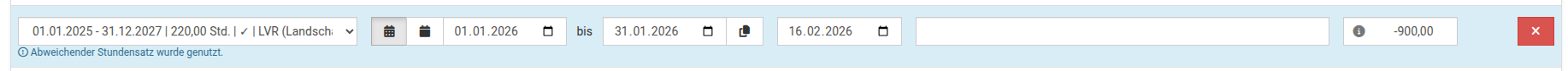 Hinweis: Wenn ein:e Klient:in mehrere Betreuungskontingente beim gleichen Kostenträger hat, wird automatisch das Kontingent ausgewählt, das zum Buchungsdatum passt.