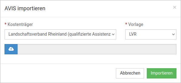 Sie können via Fakturierung -> Button „Import“ einen AVIS Import durchführen. Aktuell wird der Import für den LVR unterstützt. Die passende .csv Datei muss Ihnen dafür vorliegen.