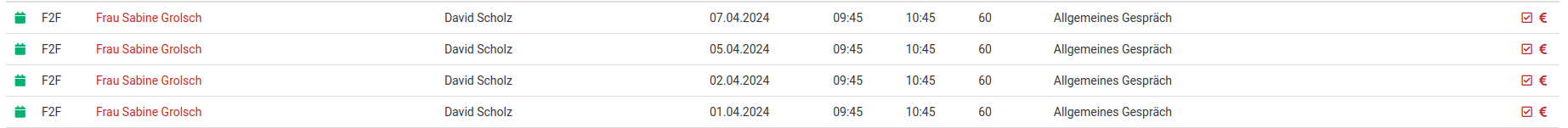 In der Terminübersicht sind 4 Termine gelistet, je 2 LVR QA und LVR UA: