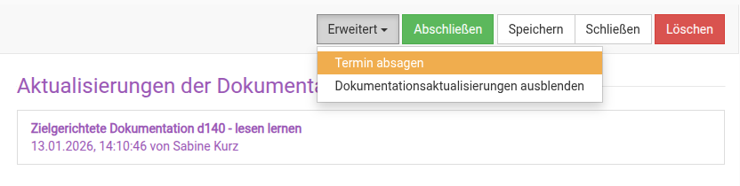 Ist die Liste eingeblendet, finden Sie im rechten Bereich der Terminmaske den Punkt „Aktualisierungen der Dokumentation“.
