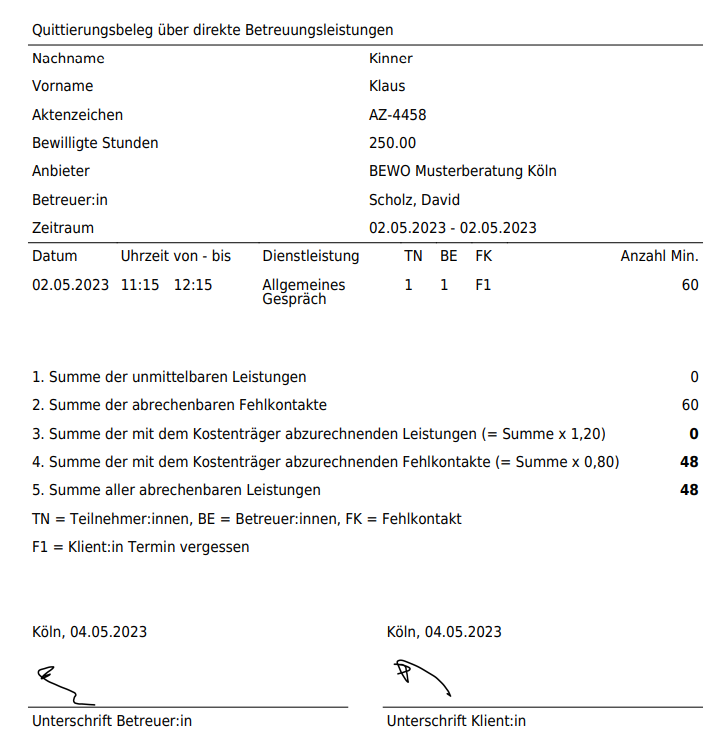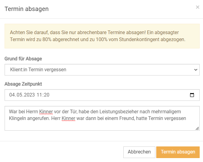 Auch in der Abrechnung wird dieser Termin nur noch mit 80% des Stundensatzes berechnet.