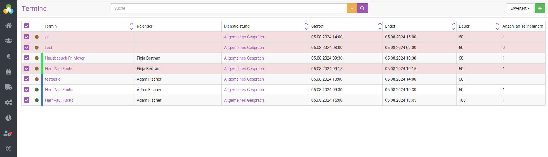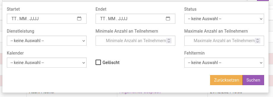 Sie haben mehrere Filter-Optionen. Hier können Sie z.B. den Status Filtern oder auch nach Start und Endzeit des Termins Filtern.