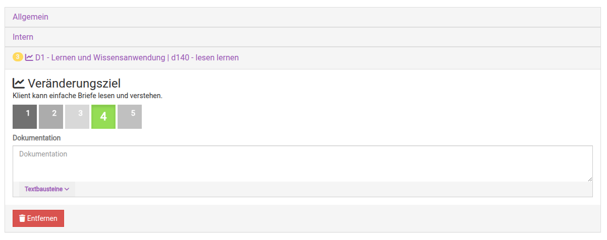 Sie können nach diesem Vorgehen zunächst alle Ziele, zu welchen dokumentiert werden soll, über das grüne Plus hinterlegen.