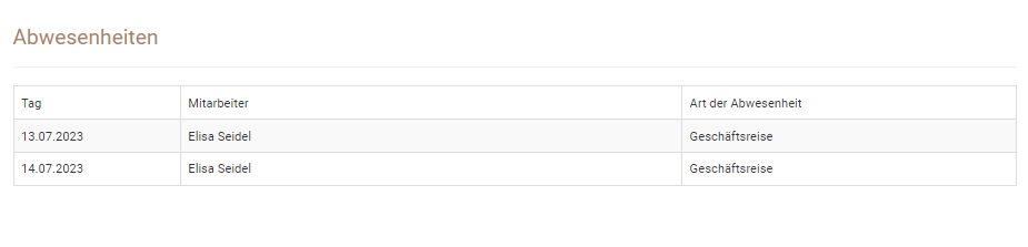 Abwesenheiten von Mitarbeitenden auf dem Dashboard anzeigen lassen