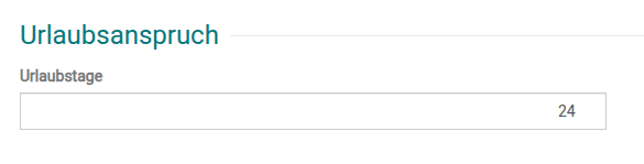 Hier können Sie den Urlaubsanspruch für den Mitarbeitenden festlegen. Dieser Wert dient informativ. Der Wert wird Ihnen auch beim Anlegen des jährlichen Urlaubskontingent in den Arbeitsstunden vorgeschlagen. Siehe dazu Urlaubskonto/Übersicht Abwesenheiten