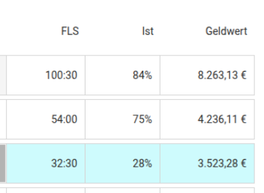Pro Arbeitstag sehen Sie nun den prozentualen Anteil der Fachleistungsstunden an der Ist-Zeit.